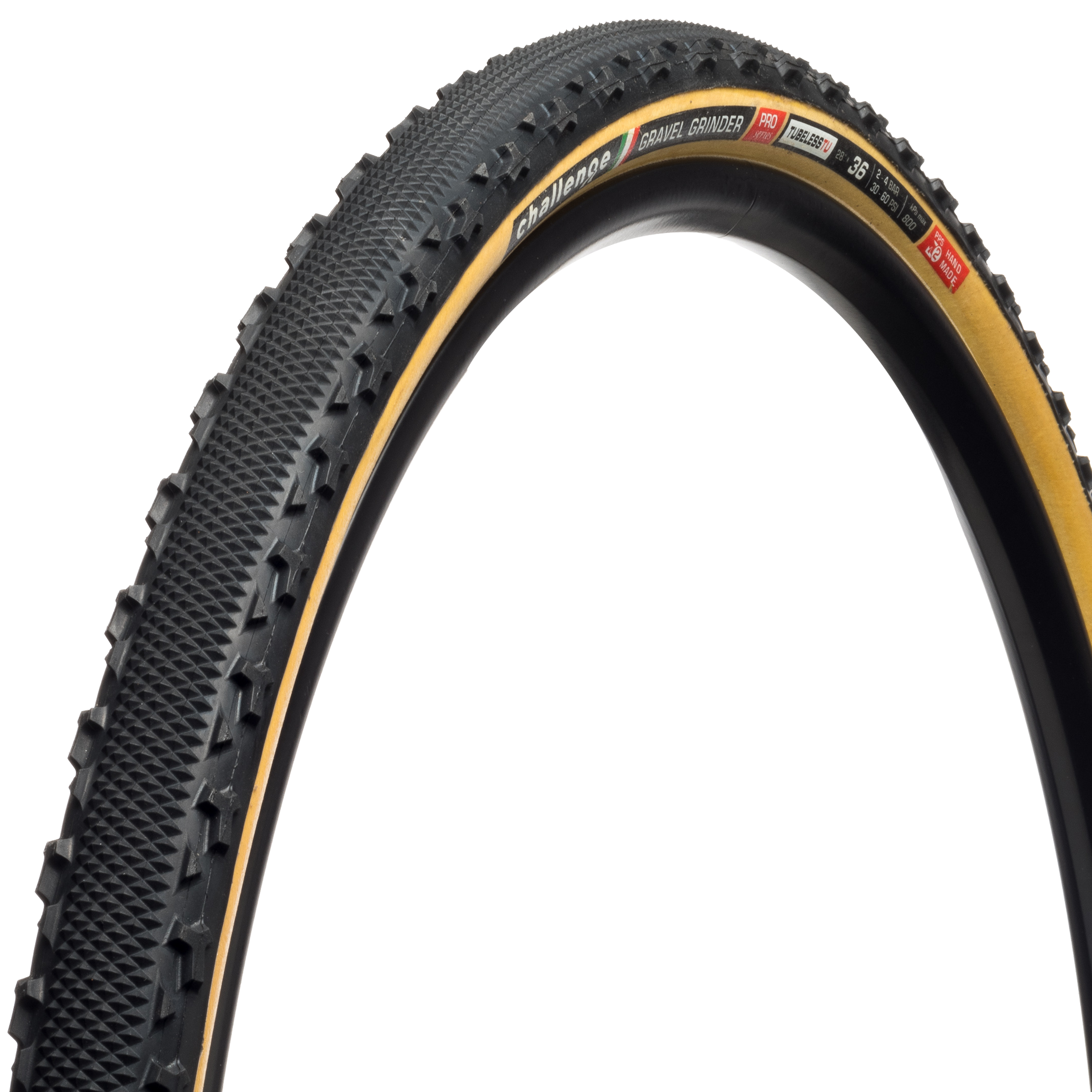 Гравийная велопокрышка Challenge GRAVEL GRINDER (открытая трубка), серия PRO. Размер 28", ширина 36 мм. TPI 260. Специальная противопрокольная технология - PPS GANZO+PPS2. Цвет: черный с кремовыми боковинами. Внешние покрытие: SuperPoly.