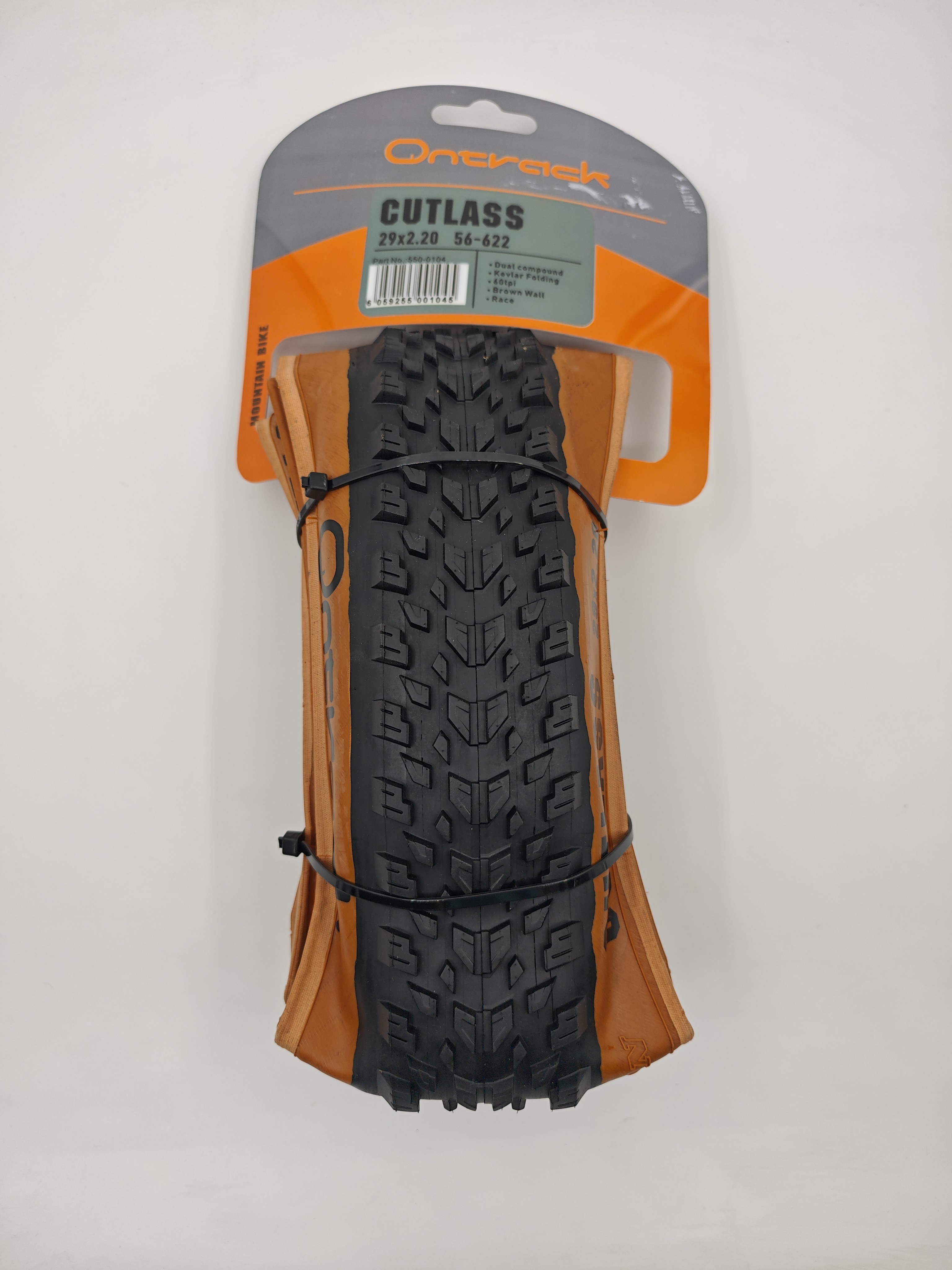 Покрышка для МТБ велосипеда ONTRACK, 29X2.20, серия CUTLASS. Кевларовое покрытие, 60 TPI. Цвет: черная с коричневыми боковинами. Вес 780-800 грамм. Tubeless Ready.