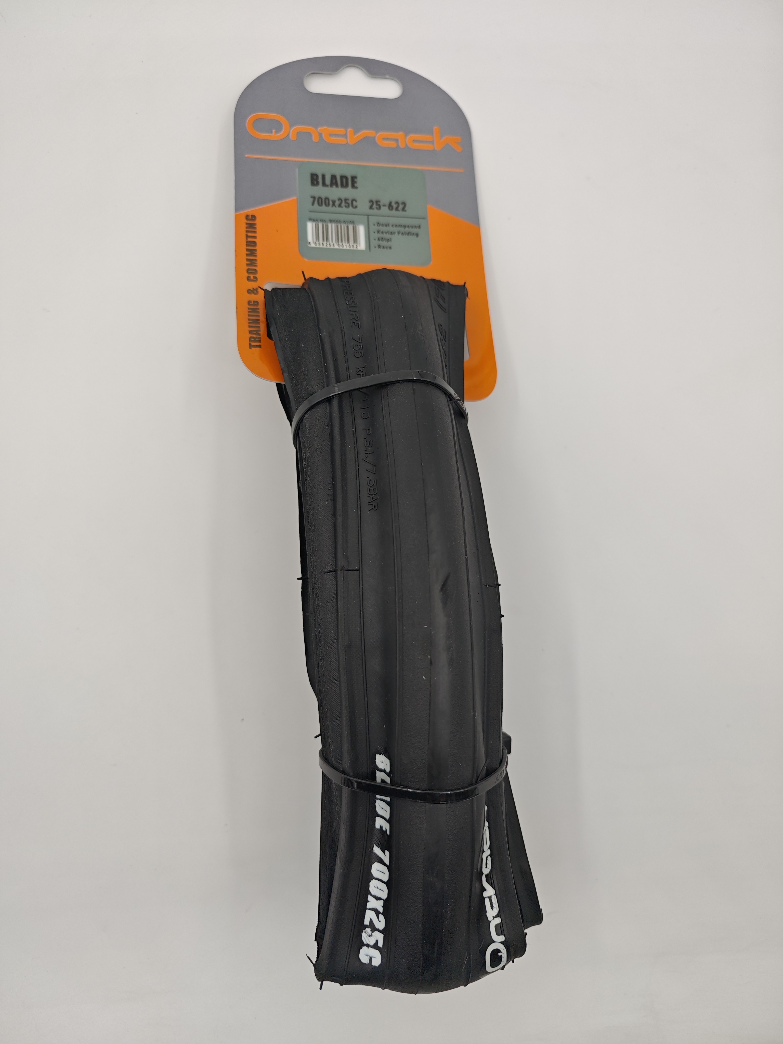 Покрышка для шоссейного велосипеда ONTRACK, 700X25C. Кевларовое покрытие, 60 TPI. Цвет: полностью черные. Вес 330 грамм.