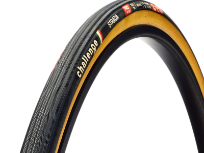 Шоссейная велопокрышка Challenge Strada (клинчеры), серия PRO, 700х25 мм, TPI 300. Корд из арамидных волокон (складной). Cпециальная противопрокольная технология - PPS GANZO. Цвет: черный с кремовыми боковинами. Внешние покрытие: SuperPoly.