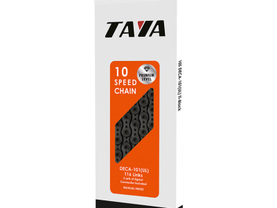 10 скоростная ультралегкая цепь TAYA для велосипеда. Цвет: черный. Увеличенная плотность покрытия (до 25% по сравнению с конкурентами), специальная бесшумная технология. Длина: 116 звеньев. Вес: 225 г. В комплект входит 2 замка Sigma +. Прямоугольная упаковка