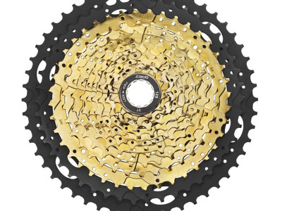 Кассета S-Ride CS-M600, 11-50T, 12 скоростей, цвет золотой и черный, на алюминиевом пауке (андонированный черный), CS-M600121150, набор звезд 11-13-15-17-19--21-24-28-32-36-42-50.