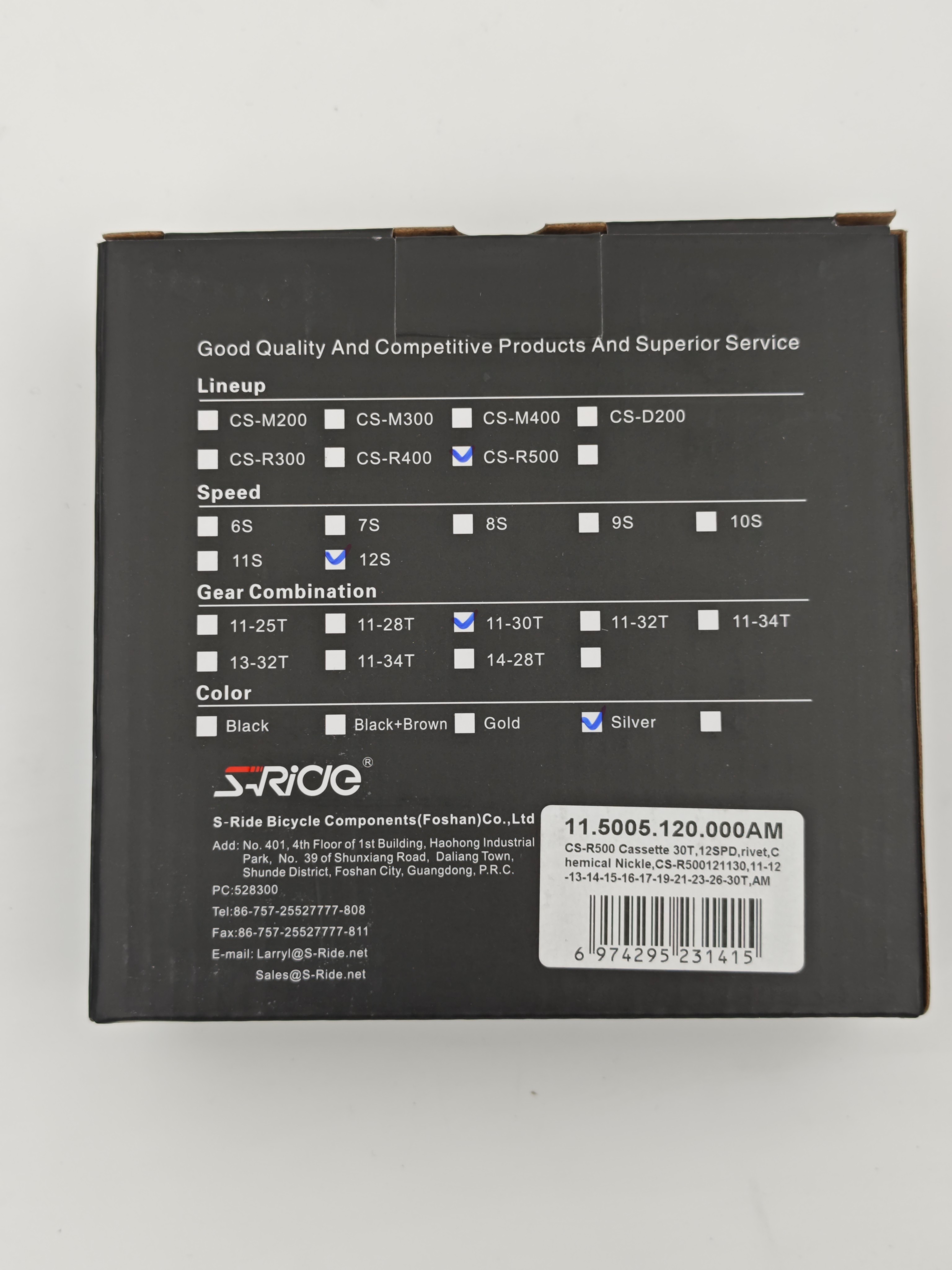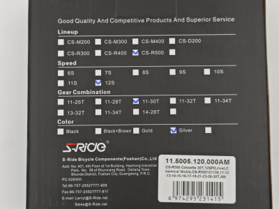 Кассета S-Ride CS-R500 30T,12SPD, клепаная, химическое никелирование,11-12- 13-14-15-16-17-19-21-23-26-30T,AM
