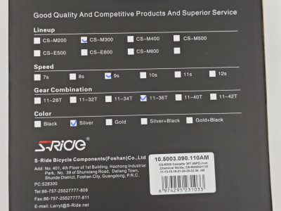 Кассета S-Ride CS-M300, 11-36T, 9 скоростей клепанная, защитное покрытие Chemical Nickle, CS-M300091136, набор звезд 11-13-15-18-21-24-28-32-36.