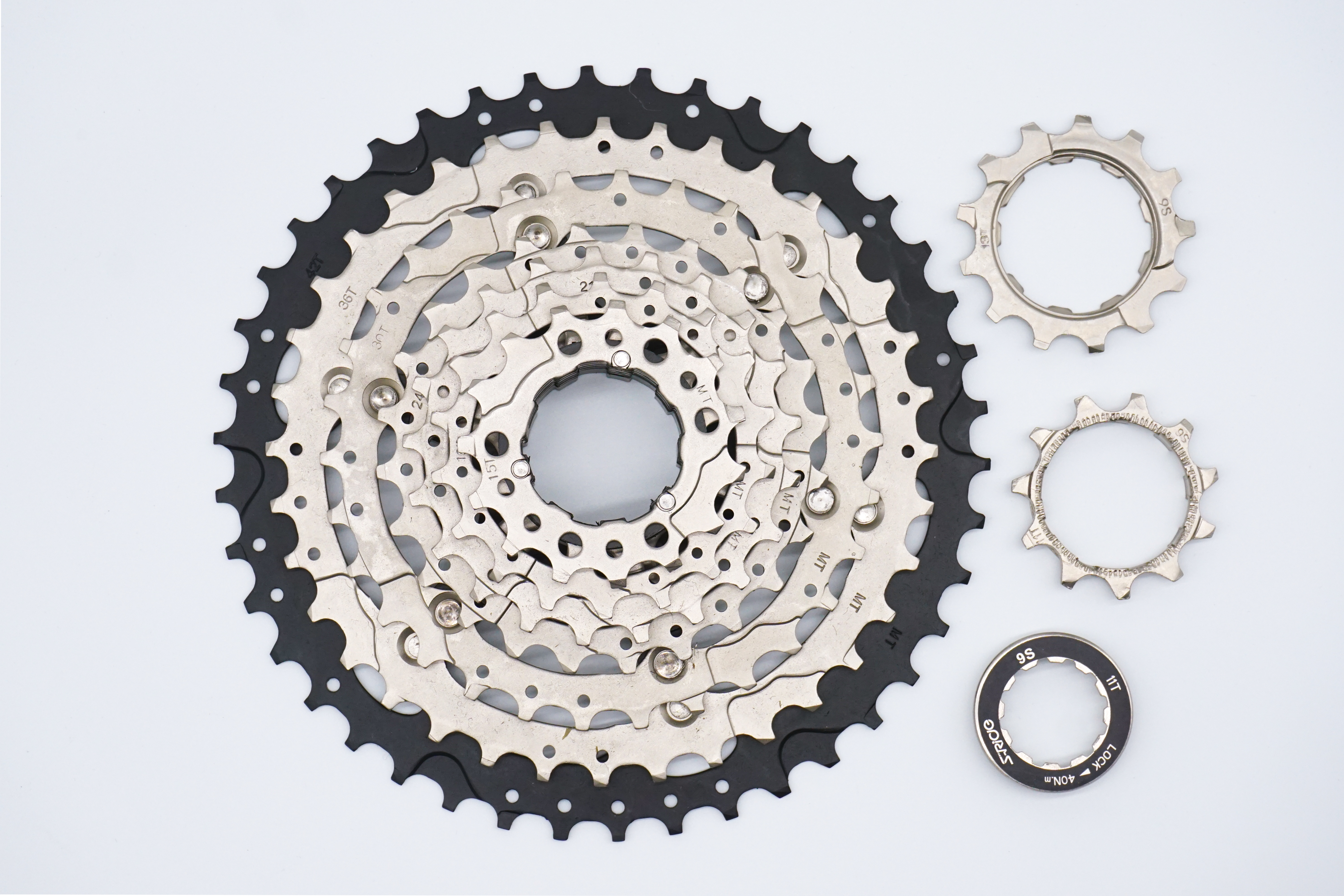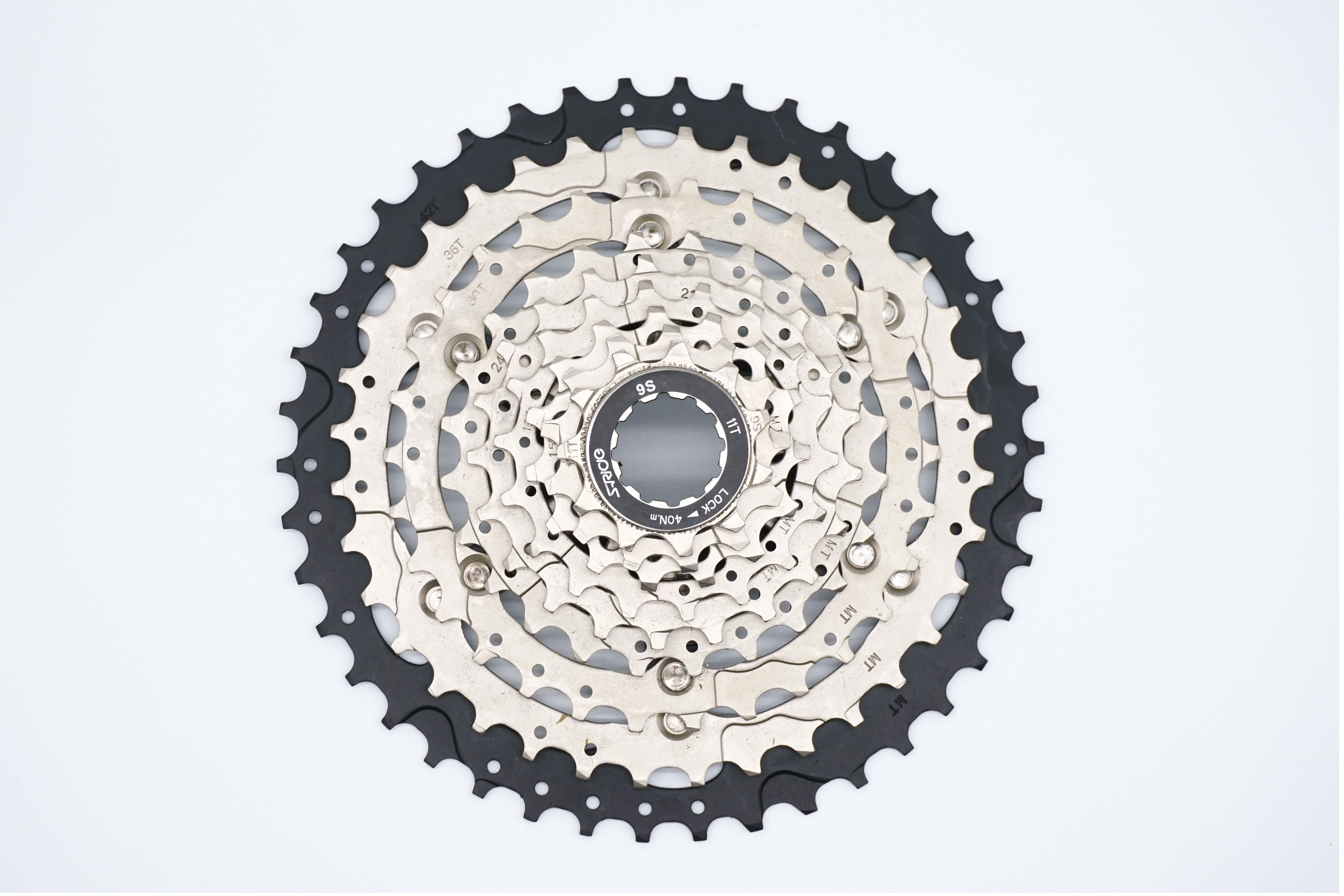 Кассета S-Ride CS-M300, 11-42T, 9 скоростей клепанная, защитное покрытие Chemical Nickle, CS-M300091142, набор звезд 11-13-15-18-21-24-30-36-42T.
