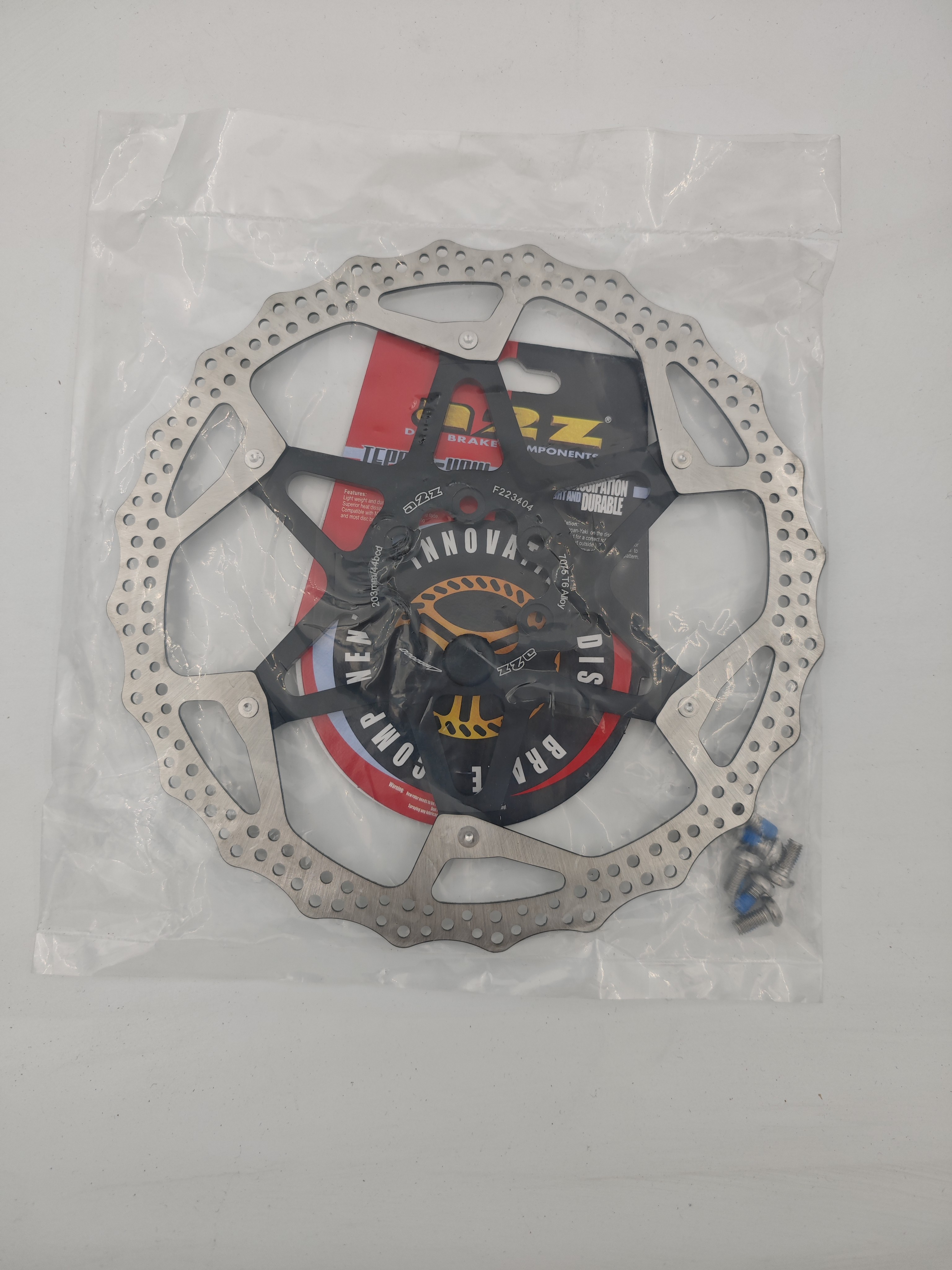 Тормозной диск A2Z серии AT, 203 мм, дизайн DOT, 6 болтов. Сделан из двух частей для уменьшения веса и более эффективного охлаждения. Центральная часть выполнена из алюминия 7075-Т6 с CNC обработкой, которая прдовтращает деформацию диска при перегреве. Цвет: черный.