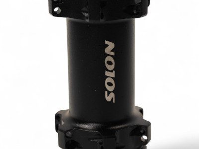 Передняя втулка под CenterLock, прямые спицы, 2 пром. подшипника, 14G*24H, 12*100 мм, анодированный черный с логотипом SOLON
