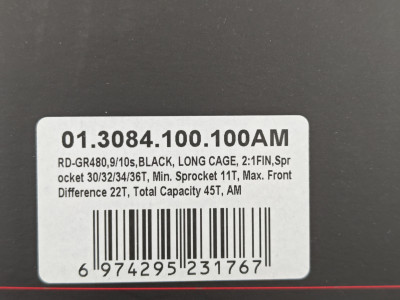 Задний переключатель для Gravel S-Ride RD-GR480,9/10ск, серебристый с чёрной длинной лапкой 2:1, Макс. ёмкость 36T, мин. ёмкость 11T, максимальная передняя разница 22T, общая ёмкость 45T, AM
