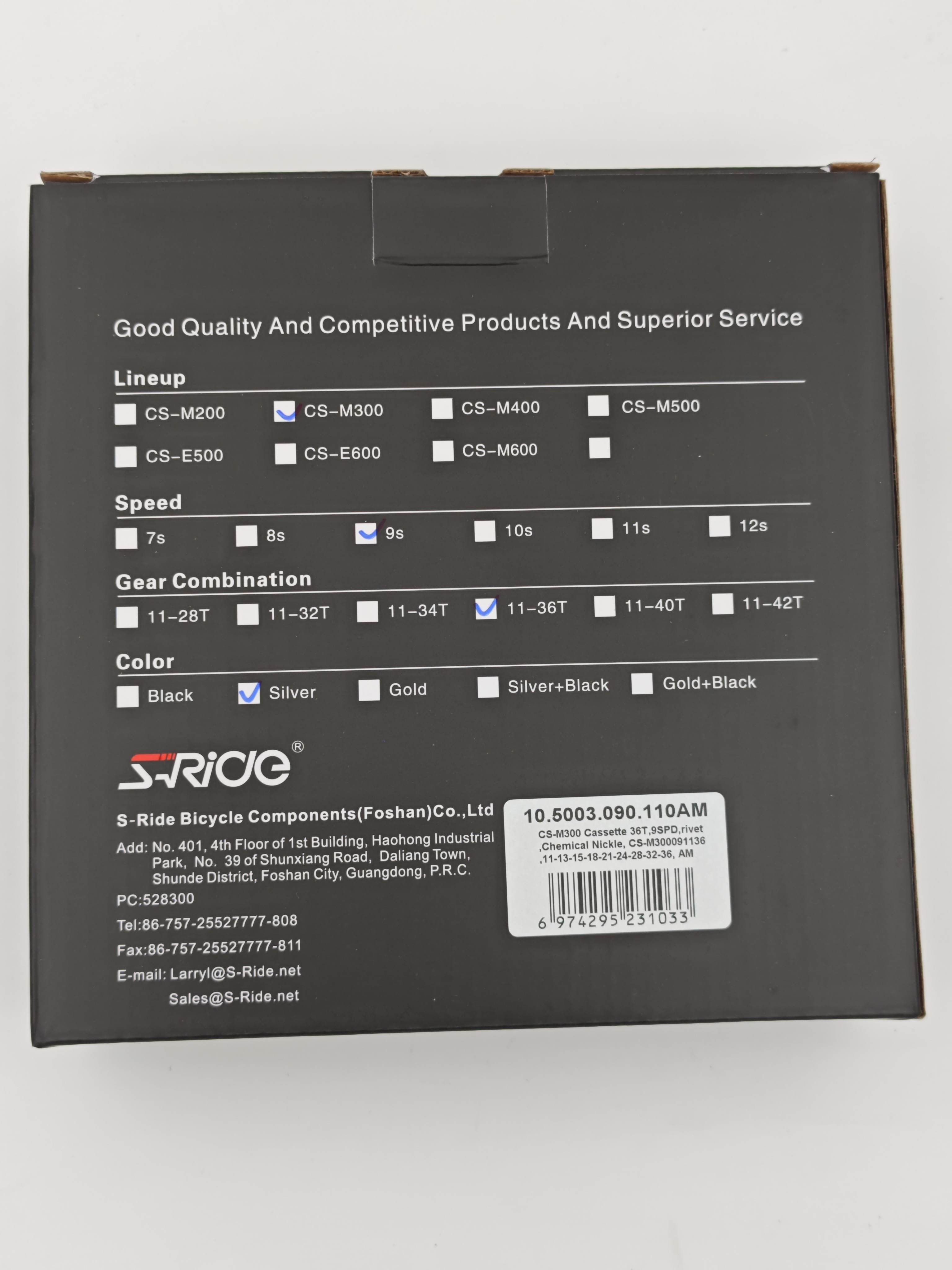 Кассета S-Ride CS-M300, 11-36T, 9 скоростей клепанная, защитное покрытие Chemical Nickle, CS-M300091136, набор звезд 11-13-15-18-21-24-28-32-36.