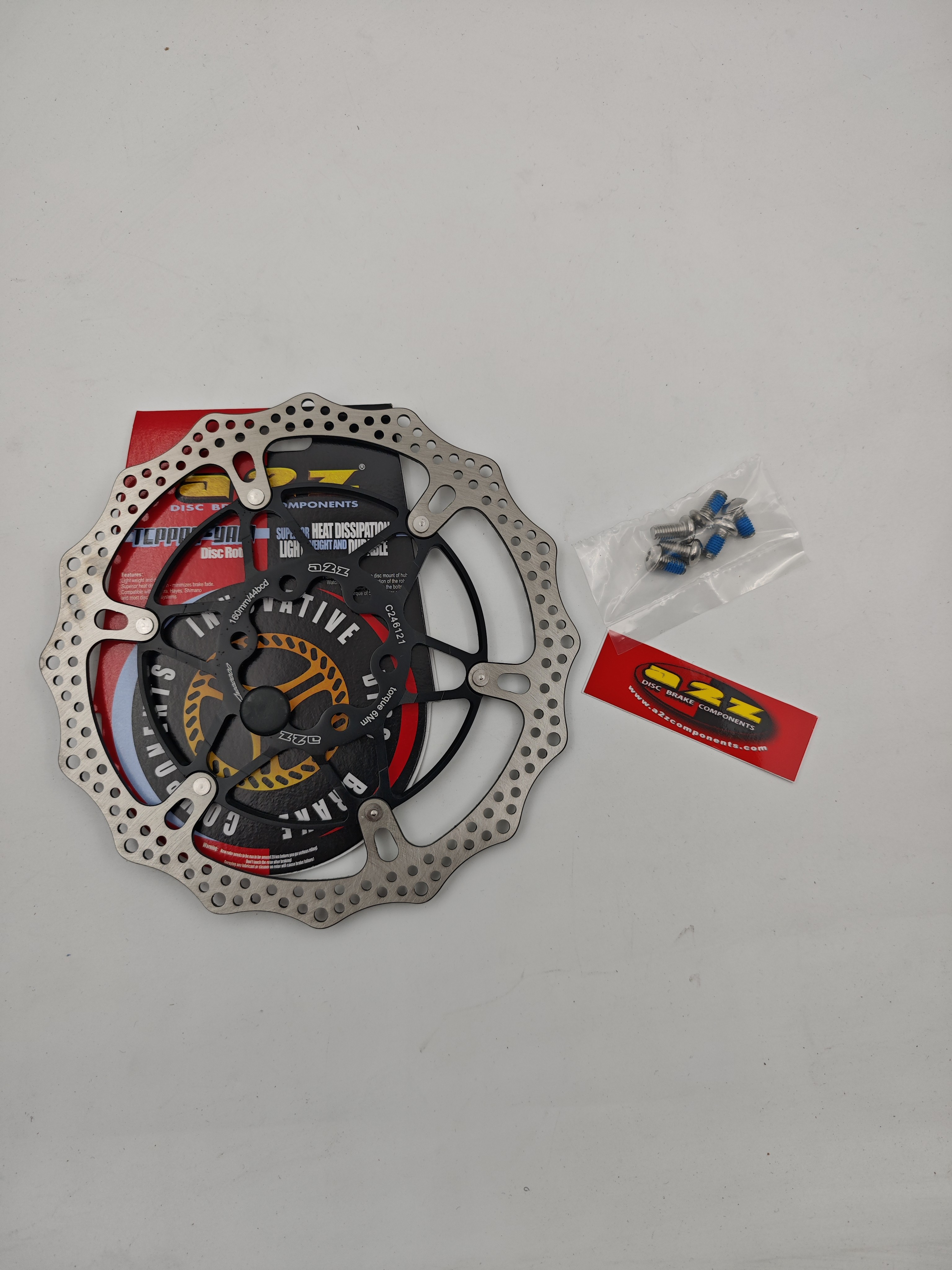 Тормозной диск A2Z серии SPV, 160 мм, дизайн DOT, 6 болтов. Сделан из двух частей для уменьшения веса и более эффективного охлаждения. Центральная часть выполнена из алюминия 7075-Т6 с CNC обработкой, которая предотвращает деформацию диска при перегреве, о основная часть из нержавеющей стали повышенной прочности. Цвет: черный.