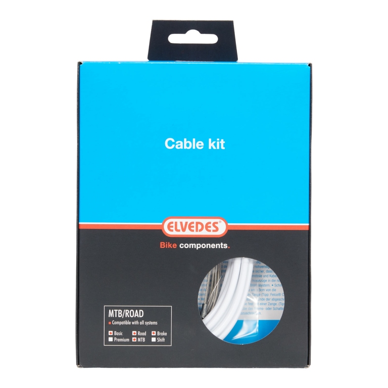 Набор для тормозов Elvedes: 19 жильный оцинкованный тормозной трос + оплетка, длина троса 1.2 мм х 1350, оплетки 2350 мм. Диаметр оплетки 4.9 мм. В комплект входят: 6 колпачков на рубашку (нержавеющей сталь), 2 наконечника для троса (алюминий), 1 о-ринг. Цвет: белый