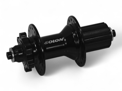 Передняя втулка под 6 болтов, 2 пром. подшипника, 14G*32H, M9*100*108 мм, анодированный черный с логотипом Solon и QR02-115 мм