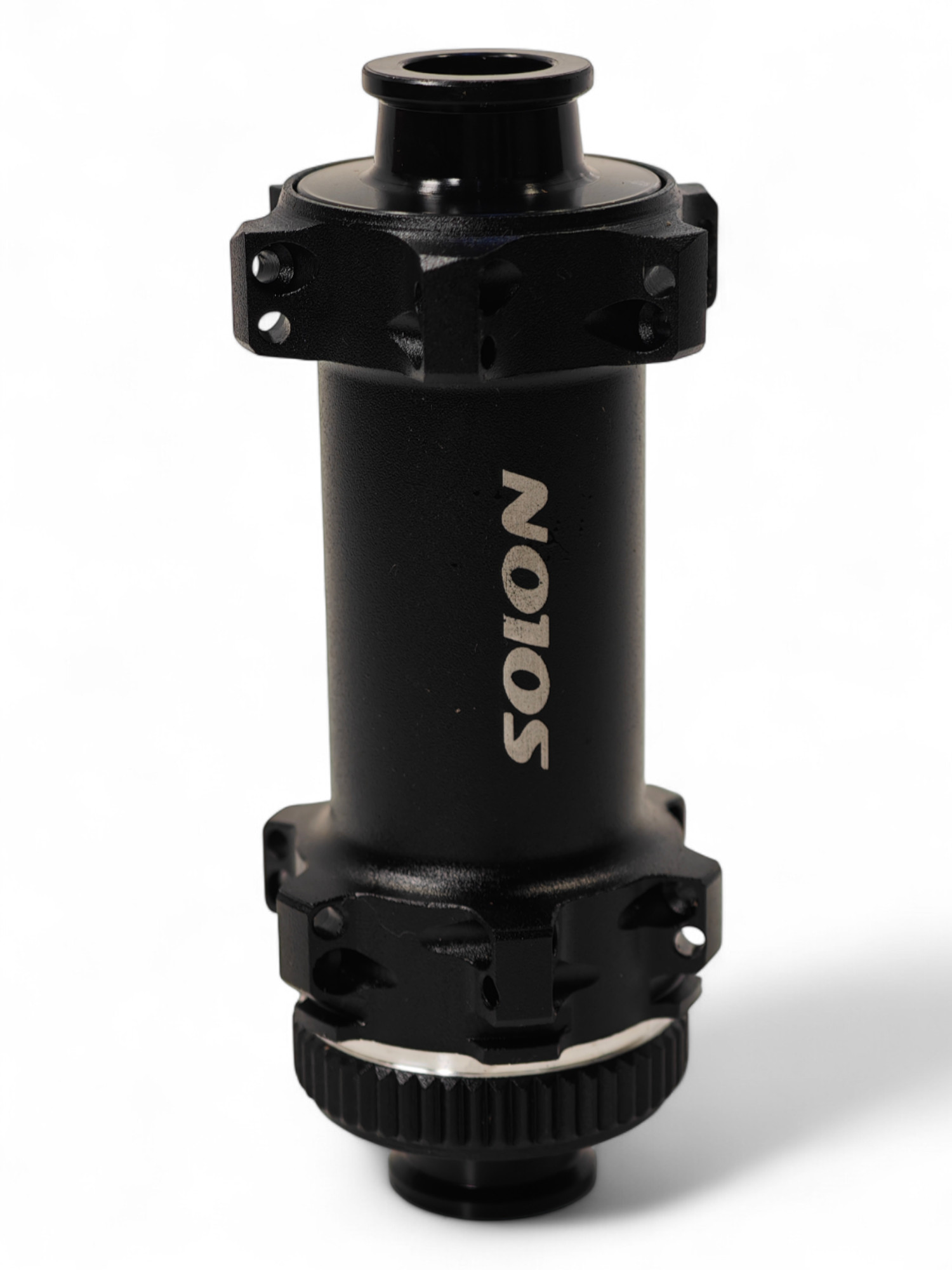 Передняя втулка под CenterLock, прямые спицы, 2 пром. подшипника, 14G*24H, 12*100 мм, анодированный черный с логотипом SOLON