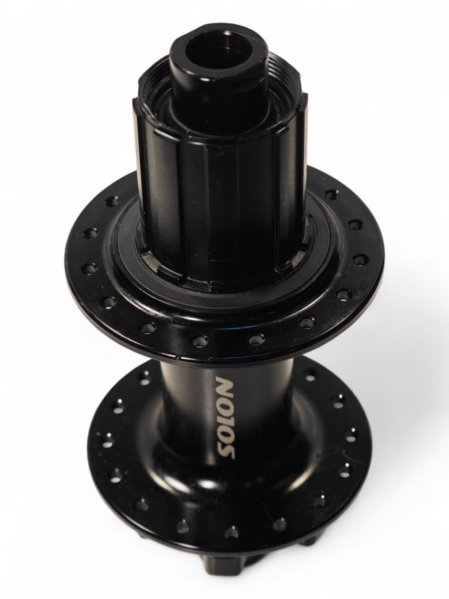 Задняя втулка под 6 болтов, 4 пром. подшипника, 14G*32H, 12*148 мм, анодированный черный под кассету HG и логотипом Solon